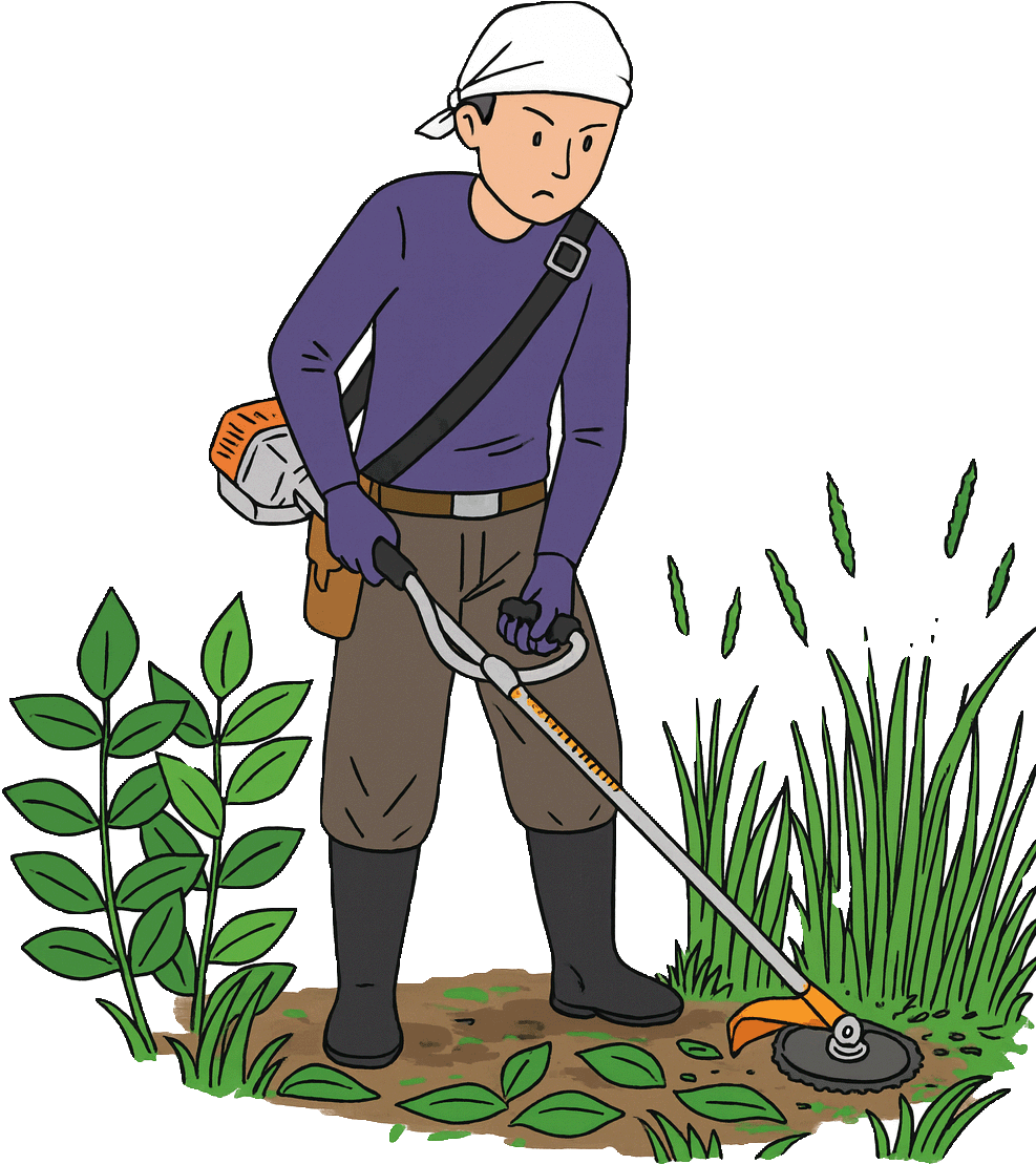 機械による雑草刈と芝刈り |